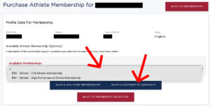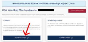6. Select ‘Purchase/Renew’ for an Athlete membership.
